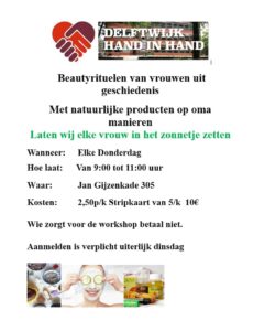 Vacatures voor vrijwilligers : kijk op onze site : www.delftwijkhandinhand.nl.