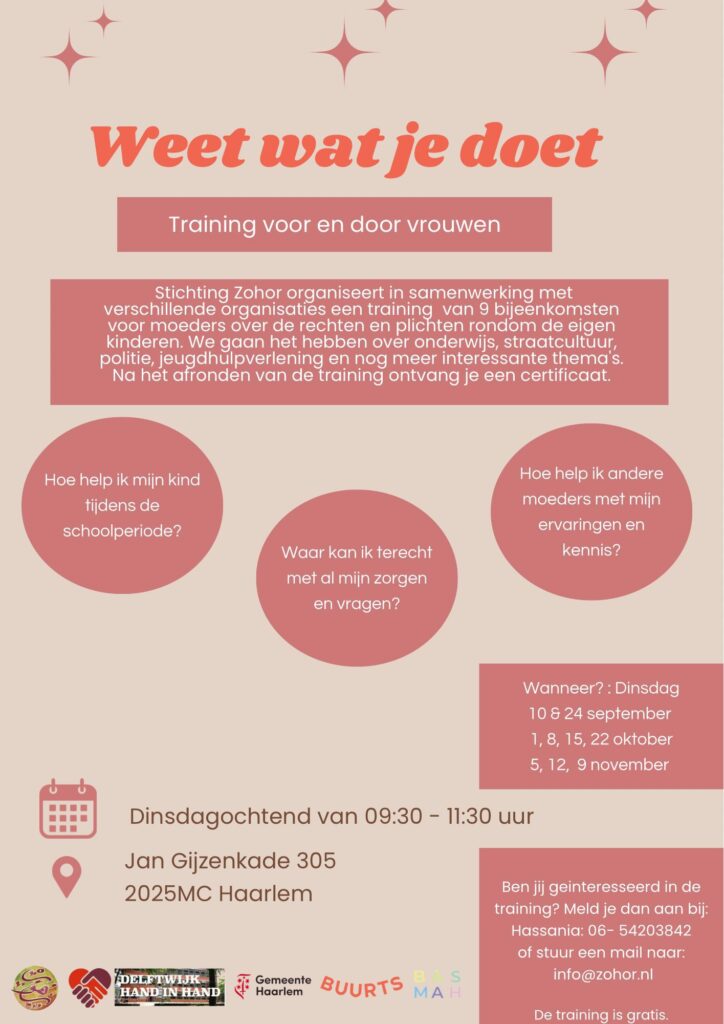 Afgelopen weken werd de training “Weet wat je doet” georganiseerd in samenwerking met stichting Zohor. Een groep enthousiaste vrouwen heeft hier veel geleerd.